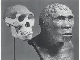 La frente caída hacia atrás era como un alero que remataba en dos cejas muy pobladas, sobre unos ojos hundidos. Pero con todo y eso, ya el hombre de Java empezaba a romper con el antecesor común que tenemos con los monos y fundaba nuestra estirpe.